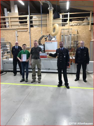 Mit großer Freude konnte nach einem weiteren Antrag der Freiwilligen Feuerwehr Attenhausen ein verdienter Betrieb aus dem Umfeld der Attenhausener Kameradinnen und Kameraden ausgezeichnet werden. Bedingt durch die Pandemie konnten die eigentlich für 2020 vorgesehenen Auszeichnungen erst jetzt vorgenommen werden.